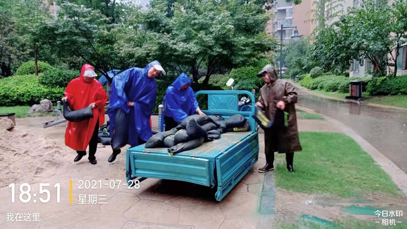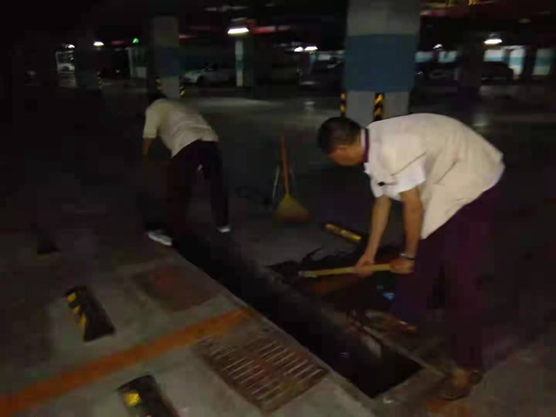 同时,值班人员不间断的在车库、储藏室、电梯机房、基坑、各类设施设备用房、道路路面巡查,实时监控防汛情况。