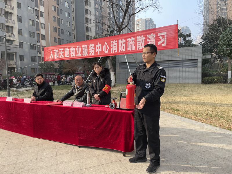 12月15日上午,人和天地物业服务中心举办消防演练活动。演练模拟了火灾发生后物业人员与业主如何快速开展救援及自救,并现场讲解了灭火器的正确使用方法。通过开展消防演练活动,提升了业主的消防安全意识,增强了物业人员火灾应急处置能力,为做好冬季消防安全工作,打造安全、和谐社区奠定了扎实基础。