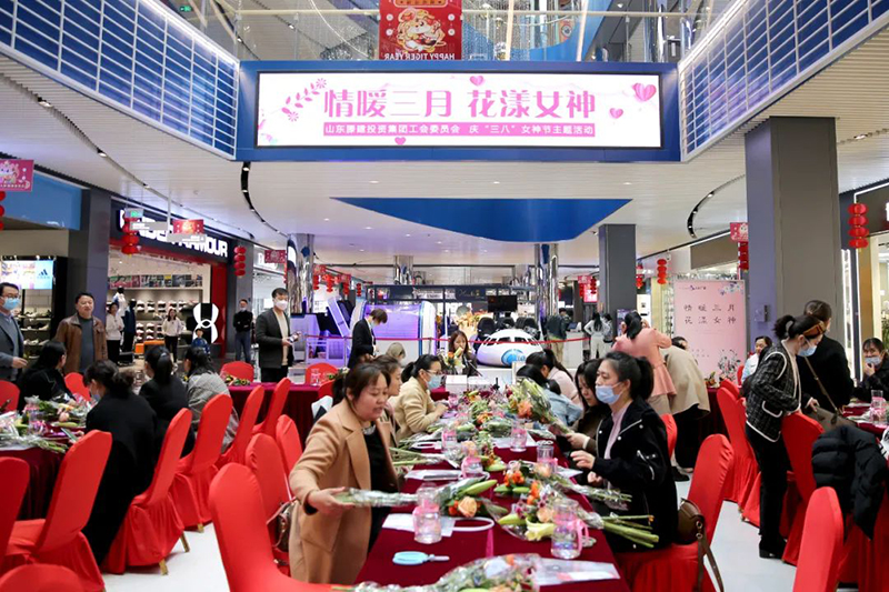 为庆祝“三八”国际妇女节的到来,丰富集团女职工文化生活,3月4日下午,集团工会组织全体女职工在滕投·人和广场开展“情暖三月 花漾女神”主题花艺插花活动。集团副书记张明、工会主席王洪全及相关部室人员参加活动。活动现场,花艺老师介绍了每一种鲜花的名字及花语,讲解了花的种类和插花中要注意的色彩搭配、主次关系和